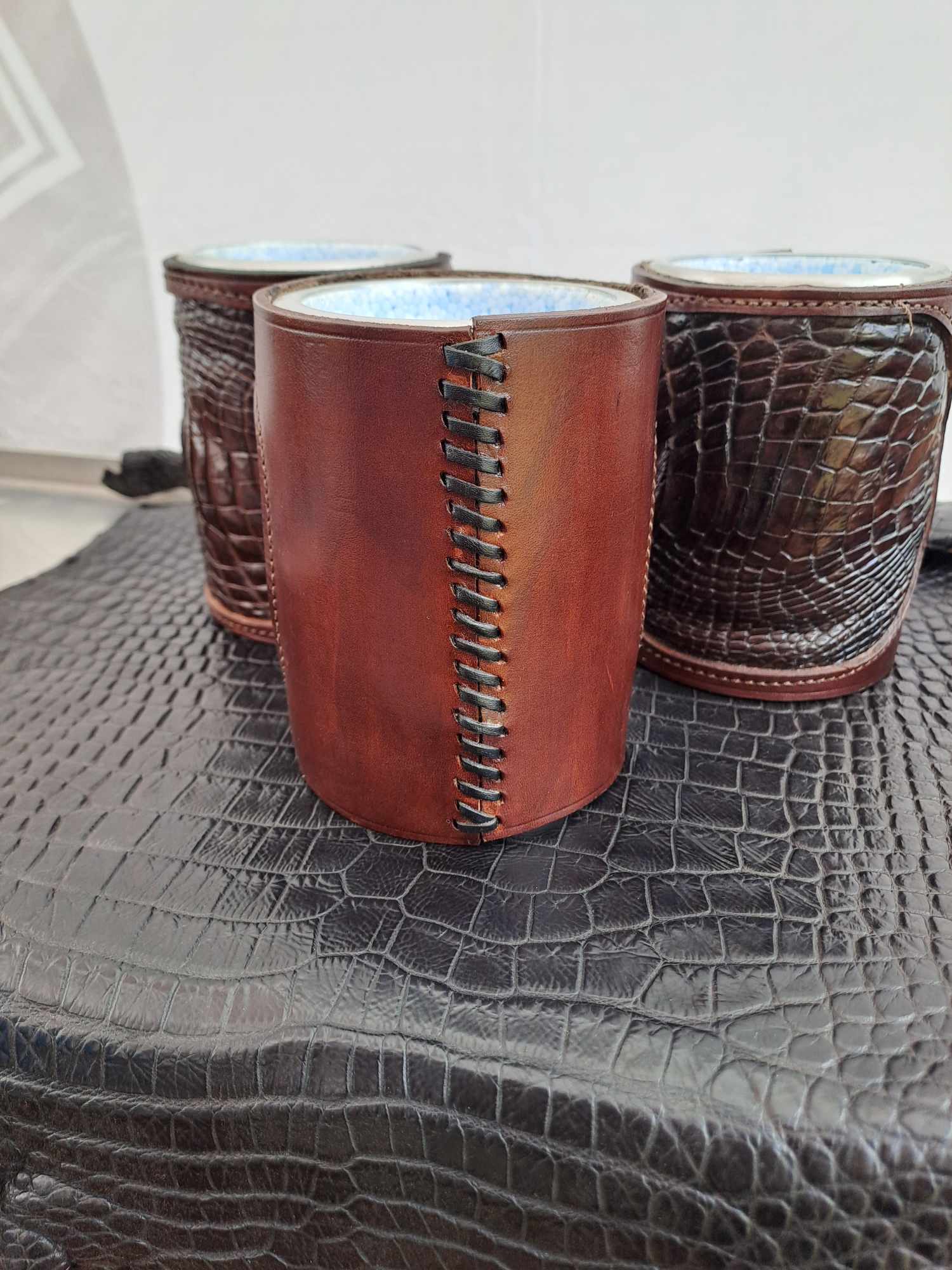 Unique and truly unusual CROCODILE INLAY STUBBY HOLDERS made from Australian Crocodile skin. No one will have one of these a real one off gift for that special person in your life.