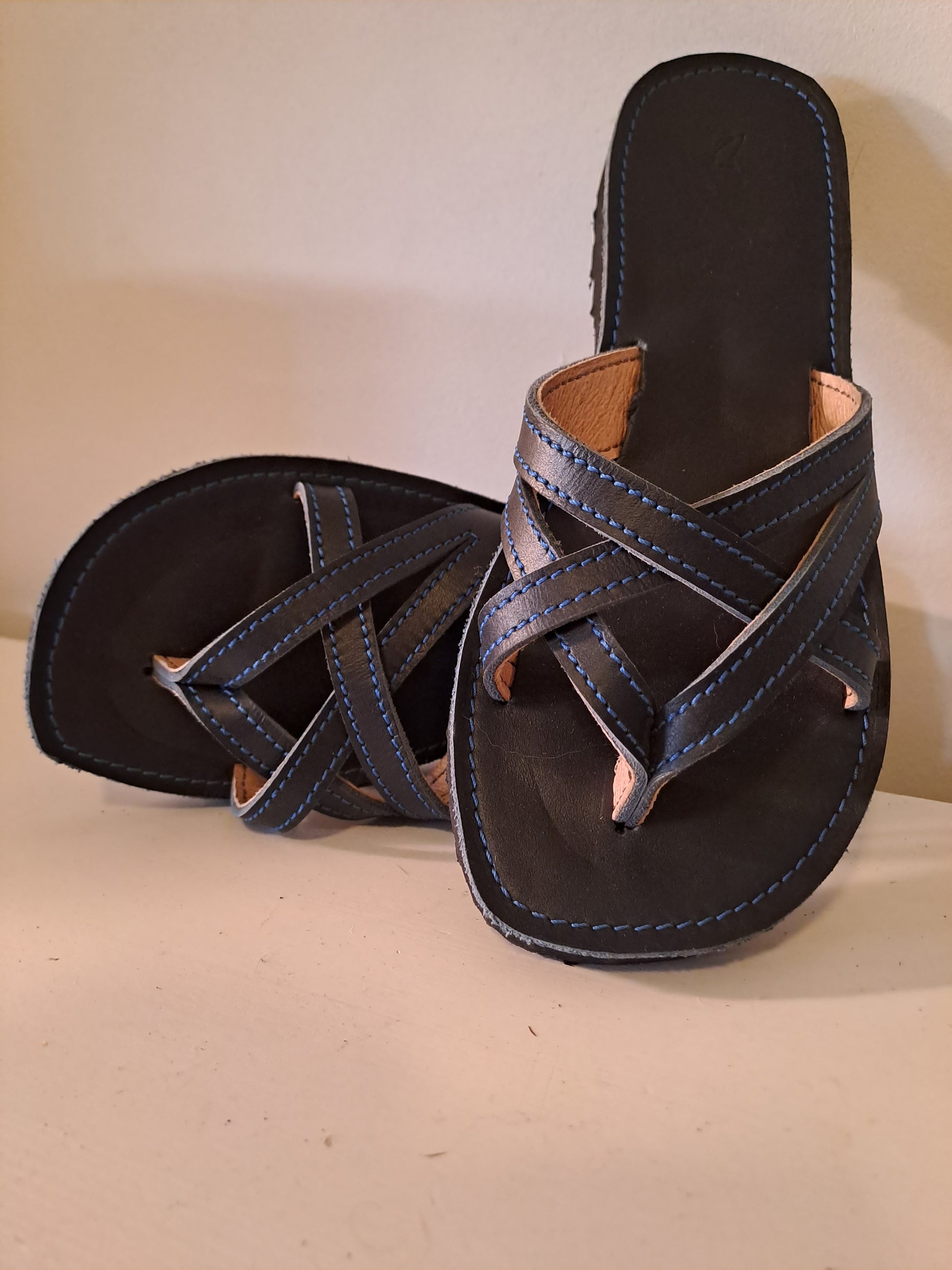 Our Double cross over thong is one of our biggest sellers. Available in Black, Blue and of course Natural leather.